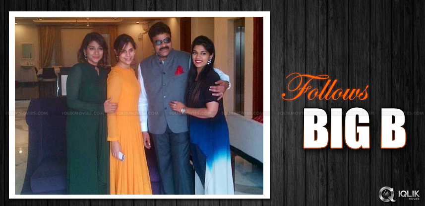 He came up with a photo picture which has him flanked by the pretty girls and those who saw this are overwhelmed. They are also saying it reminds them of Amitabh Bachchan with his family and that way, both of them are making their own mark. Of course, the difference is, Chiru is not as active as Big B in terms of media exposure.