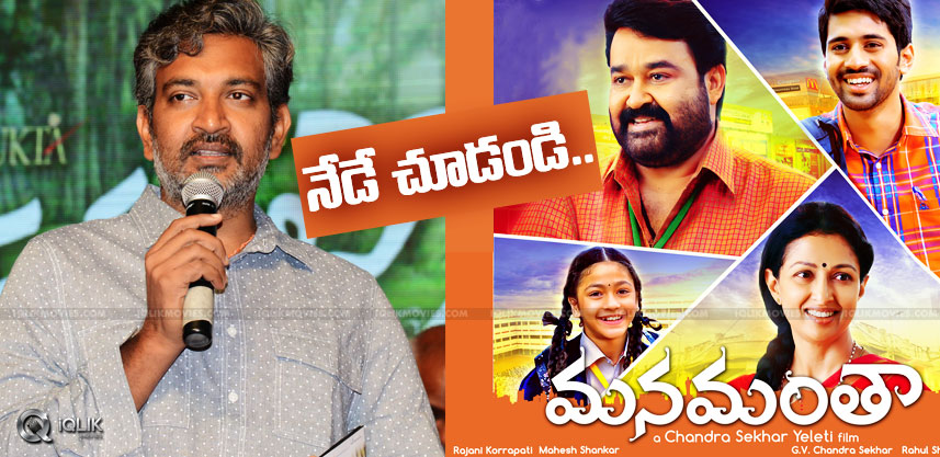 Well, we are talking about the movie Manamantha featuring Malayalam superstar Mohanlal and the gracious diva Gauthami. Buzz is that a special screening is going to be held for the Rajamouli & Co team and as we already reported he gave one day break to the shoot of Baahubali for this. With Rajamouli showing so much interest, the audience attention has fallen strongly on Manamantha.