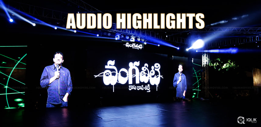 Vangaveeti audio launch kicked off amidst a tensed atmosphere with RGV meeting Vangaveeti & Devineni families to discuss about the film. However the audio event took place successfully and the main attraction is none other than RGV itself. Here are few highlights: