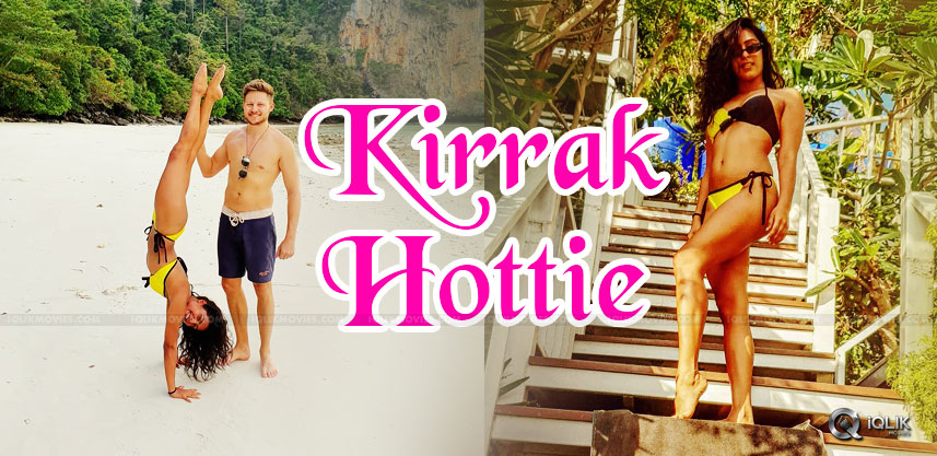 Samyuktha also played the same role in Kirrak Party (Kannada) also. Coming to the above picture, Samyuktha Hegde sported a two-piece bikini and she is practising ‘upside down’. More interesting is Samyuktha Hegde is a freestyle dancer and little bit enthusiast about gymnastics. Acting aprt, she likes adventures especially sea sporting.