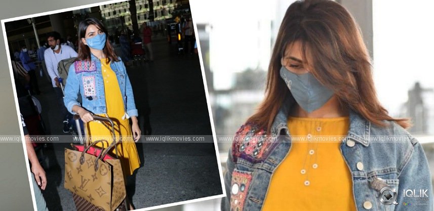 Samantha is one of the star heroines in South film industry. The actress was spotted at RGIA yesterday. The actress is looking dapper in a yellow outfit. Interestingly, there is a talk about Samantha's costly handbag. Samantha wore a yellow mid-top, Denim jacket, a leather handbag and a Travel Bag. A lot of netizens started talking about the price of the handbag.